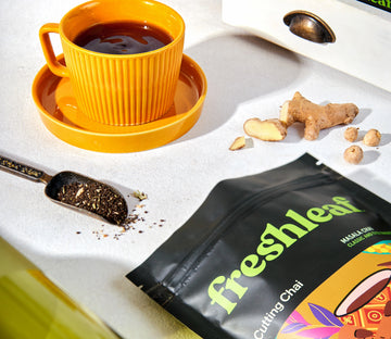 Savor the zesty flavors of ginger, sweet-minty cardamom, and aromatic fennel in Freshleaf's Cutting Chai, a carnival of taste that adds a fun twist to your routine.
