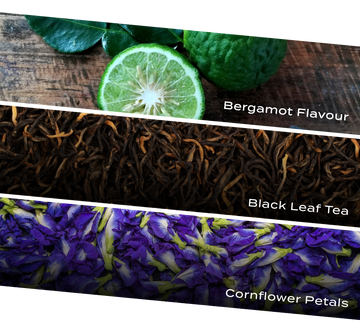 Black leaf tea, bergamot oil, cornflower petals