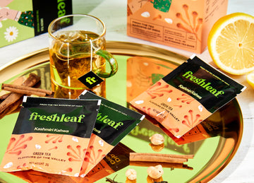 Taste the earthy freshness of green tea mingled with nutty almonds, exotic cardamom, sweet cinnamon, and ethereal saffron topped off with floral rose undertones in Freshleaf's Kashmiri Kahwa.